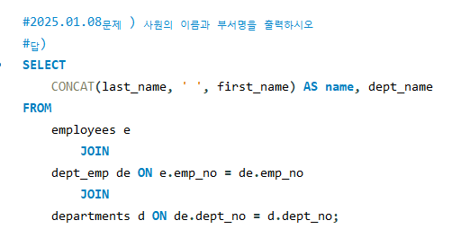문제 ) 사원의 이름과 부서명을 출력하시오