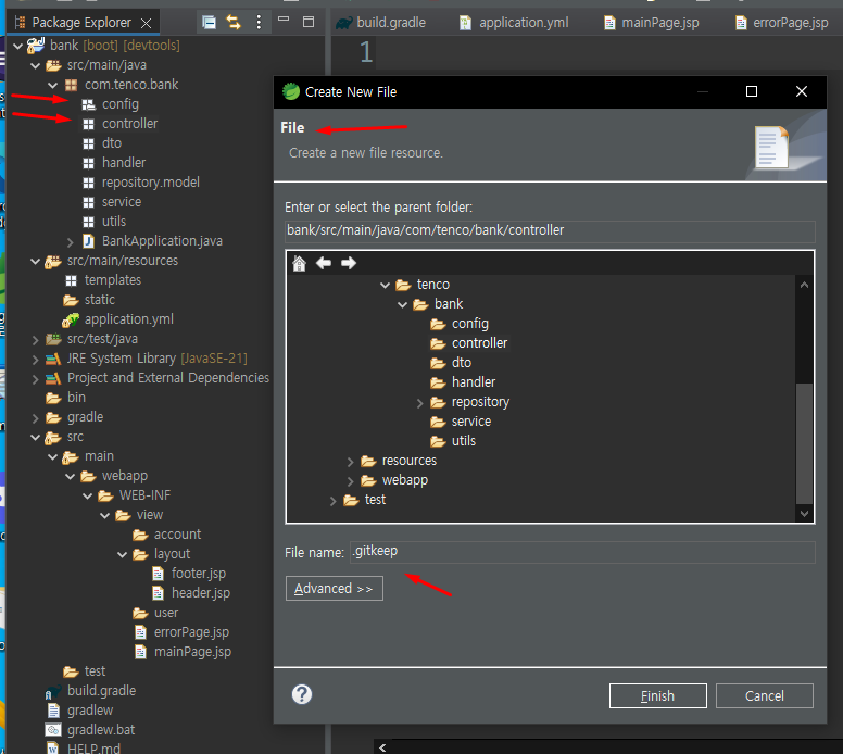 gitkeep 처럼 숨김 파일을 생성해서 약간 꼼수를 부려 비어 있는 폴더 및 패키지를 commit 및 push 해 봅시다.