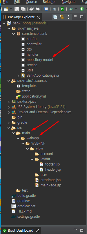 아래 이미지를 확인하고 동일한 패키지 및 폴더 및 파일을 생성해 봅시다. (댓글 확인)