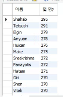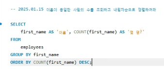 문제 ) 2025.01.15 이름이 동일한 사람의 수를 조회하고 내림차순으로 정렬하여라