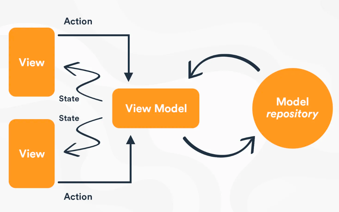 ViewModel | UI 로직과 상태를 관리. View와 Model 간의 의존성을 줄이고 중개 역할을 수행. |